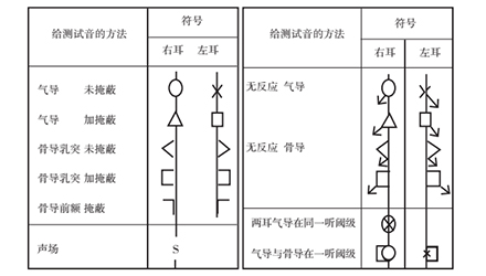 <span style="font-size:16px;"> 橫坐標代表頻率,以倍頻程為單位分隔——請記住倍頻程的概念,它指兩個頻率間的間隔,高頻是相鄰低頻的兩倍;縱坐標代表強度。右耳氣導用紅色“O”標記,左耳用藍色“X”標記,閾值就是頻率與強度的交叉點位置。比如某人左耳在250Hz處的聽閾是30dBHL,則在250Hz這一軸線上30dBHL中點劃一藍叉。30dBHL是聽閾,正常人的聽閾是-10dBHL~25dBHL,也就是說,這個人的聽力損失(也可稱做聽敏度下降)只有5dBHL。</span></p><center><img src="/upfiles/20181015013344992.png" alt="" /><br /></center><p></p><p style="text-align: center;"><span style="font-size:14px;">國家統一聽力標記符號</span></p><p><span style="font-size:16px;"> 用聽力圖表示聽閾級時,應采用上表所給符號,對氣導相鄰點用直線連接,骨導用虛線連接。如在聽力計最大輸出級仍無反應,可在相應符號處垂直向下畫一箭頭,或在符號的下外角與垂直方約成45°角向下畫圖一箭頭(即左耳符號箭頭向右,右耳符號箭頭向左)。無反應的符號記在聽力圖上代表聽力計最大輸出的聽力級處。如用彩色筆記錄,右耳符號和連線為紅色,左耳符號與連線為藍色。從篩選測聽法得出的結果應清楚地照此表示出來。</span></p><p><span style="font-size:16px;"> 更多詳情請登錄www.zqsjzx.cn</span></p>" />