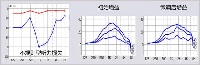 它屬于復雜案例的一種,通常,我們在驗配過程中需要耗費大量精力,反反復復調試可能也不一定效果好。不規則型聽力損失在日常的驗配中不如陡降型聽力損失常見,可查閱的臨床試驗和深入研究都很少。
