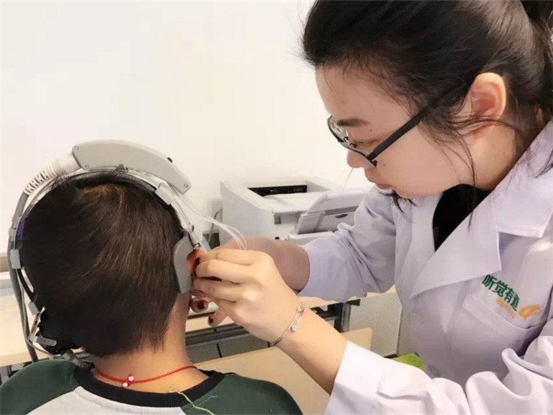 <span style="font-size:16px;"> </span></p><p></p><center><img src="/upfiles/201801080309414289.jpg" alt="" /><br /></center><center><br /></center><p></p><p></p><p><span style="font-size:16px;"><strong> 病史詢問及耳鏡檢查</strong></span></p><p><span style="font-size:16px;"> 了解用戶聽力狀況,聽力專家會(huì)對你的聽力損失的原因、時(shí)間、程度等情況作全面了解。</span></p><p></p><center><br /></center><center><img src="/upfiles/201801080309472370.jpg" alt="" /><br /></center><center><br /></center><p></p><p></p><p><span style="font-size:16px;"><strong> 聽力測試</strong></span></p><p><span style="font-size:16px;"> 通過聽力測試儀測試你的聽力數(shù)據(jù),從而得出一份完整、準(zhǔn)確的聽力圖;為選配助聽器提供科學(xué)依據(jù)。檢測項(xiàng)目主要包括:純音聽力測試、純音聽閾掩蔽測試,氣導(dǎo)測試、骨導(dǎo)測試、中潛伏期電位(MLR)等</span></p><p></p><center><img src="/upfiles/201801080309529970.jpg" alt="" /><br /></center><center><br /></center><center><br /></center><p></p><p></p><p><span style="font-size:16px;"><strong> 調(diào)試、選配助聽器</strong></span></p><p><span style="font-size:16px;"> 由驗(yàn)配師將你的聽力測試結(jié)果圖輸入電腦,通過處方公式選擇、補(bǔ)償參數(shù)選擇、軟件程序設(shè)定、個(gè)性化調(diào)試選出適合你的助聽器并調(diào)試;將調(diào)好的助聽器進(jìn)行助聽器配戴效果試聽</span></p><p></p><center><br /></center><center><img src="/upfiles/201801080309582944.jpg" alt="" /><br /></center><center><br /></center><p></p><p></p><p><span style="font-size:16px;"><strong> 取耳樣,制耳模或助聽器外殼</strong></span></p><p><span style="font-size:16px;"> 決定購買后,選配師會(huì)用進(jìn)口耳印材料,為你取下耳道模型;如果購買的為定制機(jī)則需要將耳樣掃描發(fā)給廠家制作專屬你的助聽器。耳背機(jī)的話則需要制作專屬你的耳模。這個(gè)過程大約需要一周的時(shí)間</span></p><p></p><center><img src="/upfiles/201801080310076490.jpg" alt="" /><br /></center><center><br /></center><center><br /></center><p></p><p></p><p><span style="font-size:16px;"><strong> 真耳測試及微調(diào)、效果評估</strong></span></p><p><span style="font-size:16px;"> 由驗(yàn)配師將定制的助聽器為你佩戴上,并通過電腦導(dǎo)入之前初選的數(shù)據(jù)設(shè)置,體驗(yàn)配戴效果,進(jìn)行再次的微調(diào)。真耳測試能最好的反映出小孩配戴助聽器的效果</span></p><br />" />